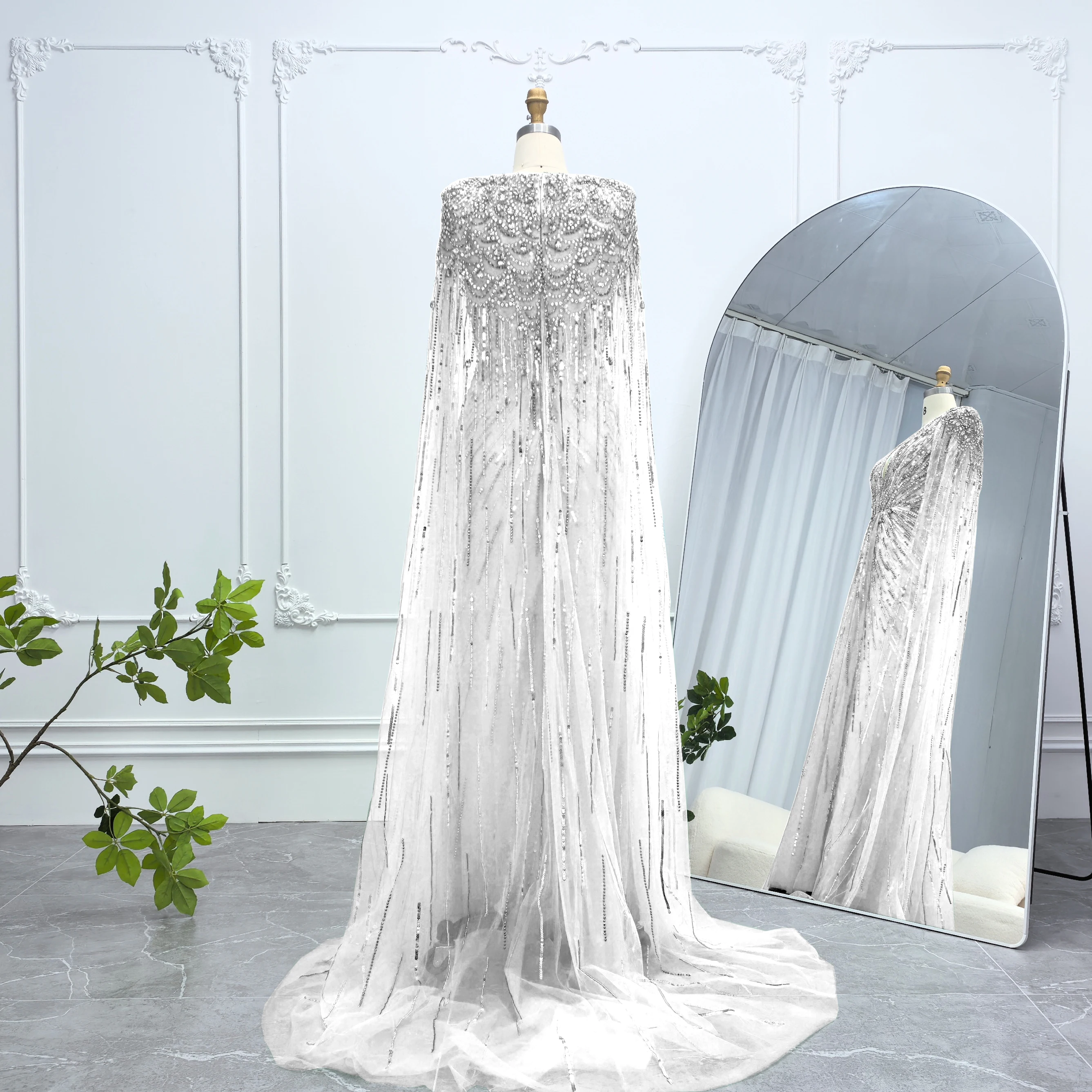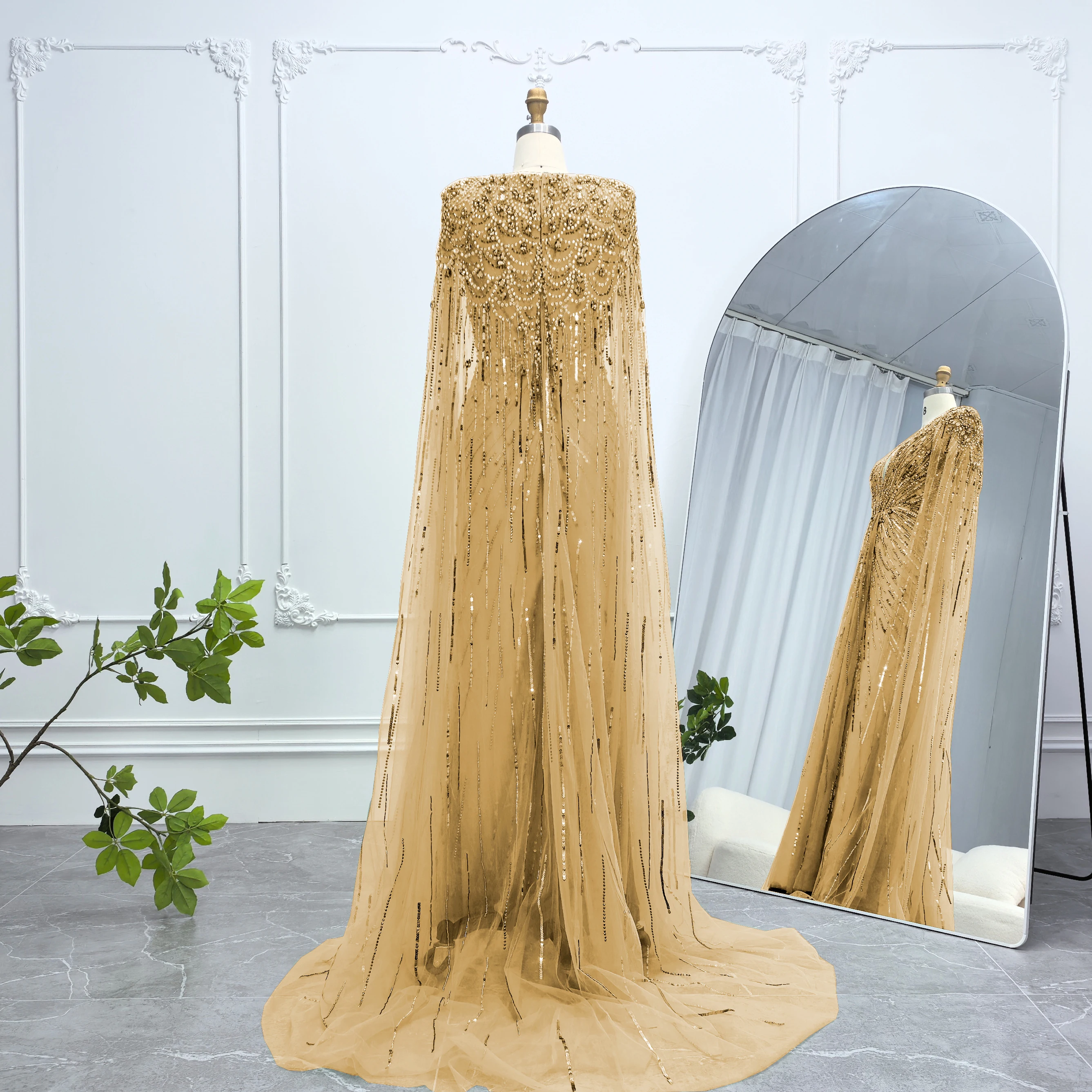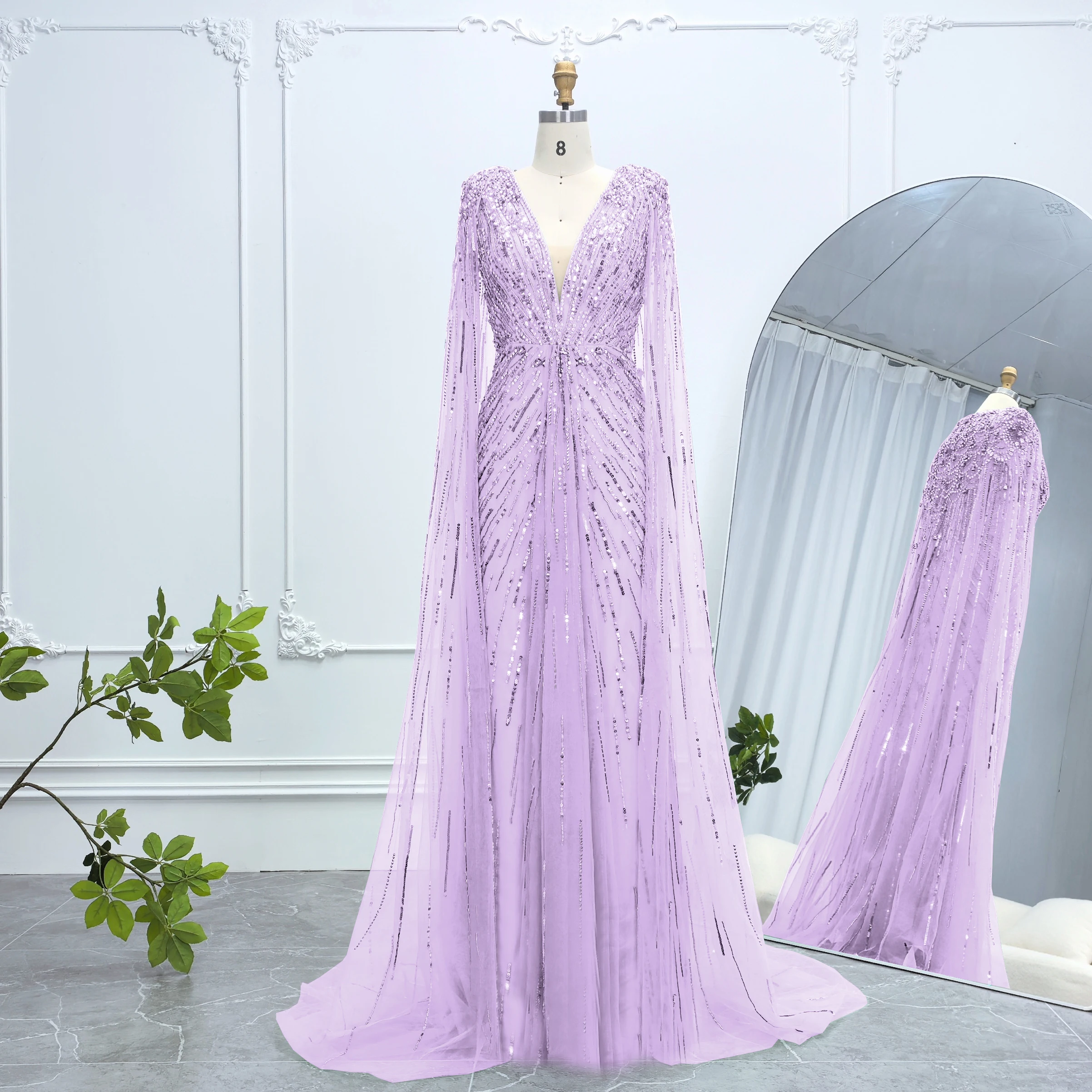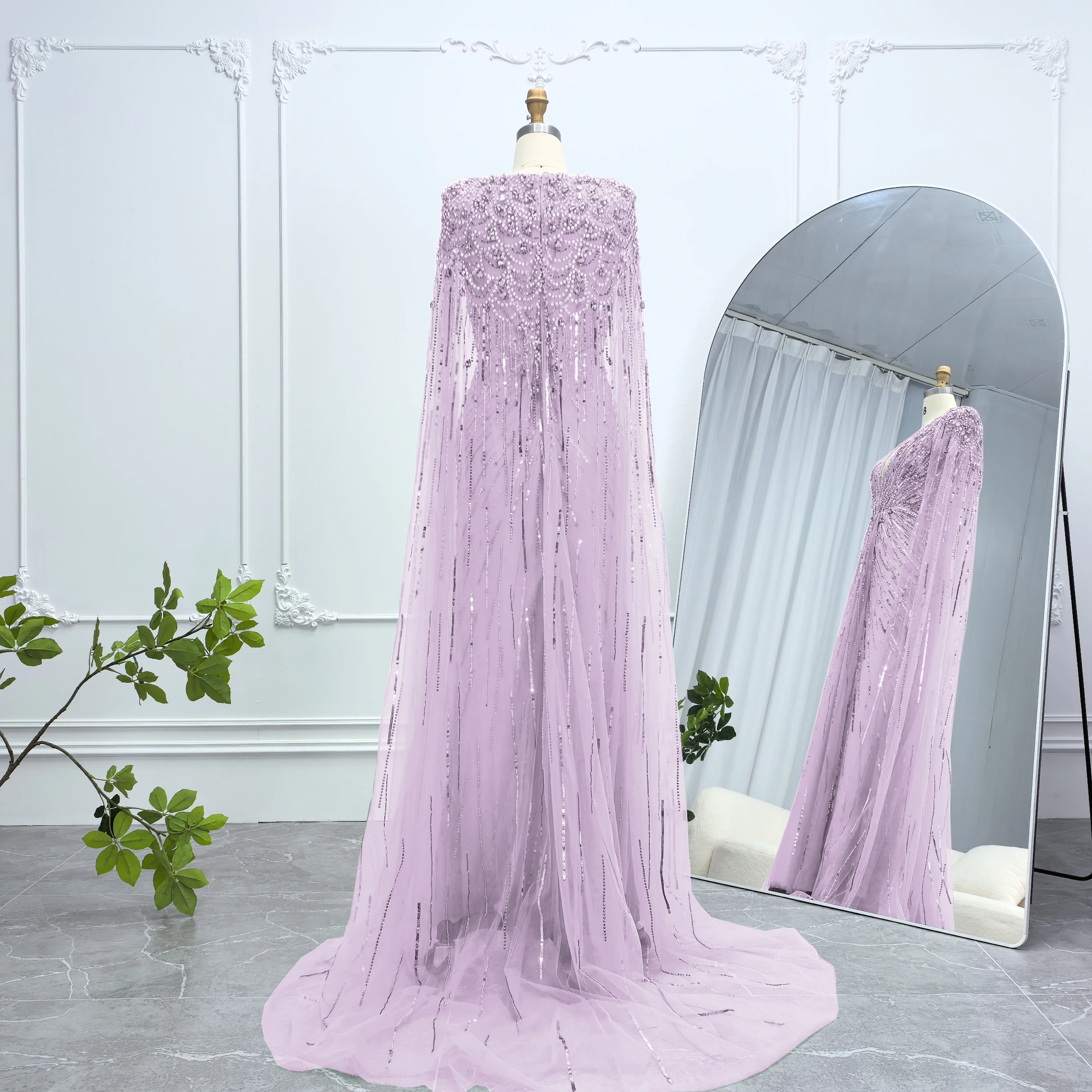Robe de soirée luxueuse Alice CollectionPro vert sauge pour femme 2025 avec manches cape, robe de mariée longue champagne sur mesure