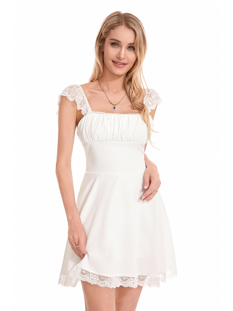 Robe trapèze vintage pour femme, manches courtes, buste froncé, couleur unie, mini-robe fluideCaractéristiques:
