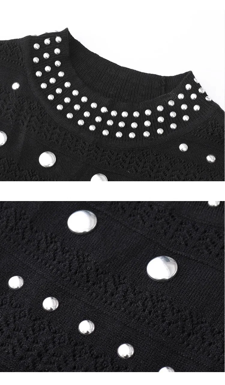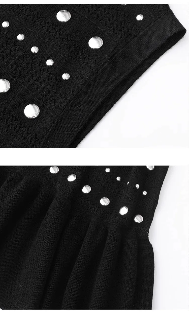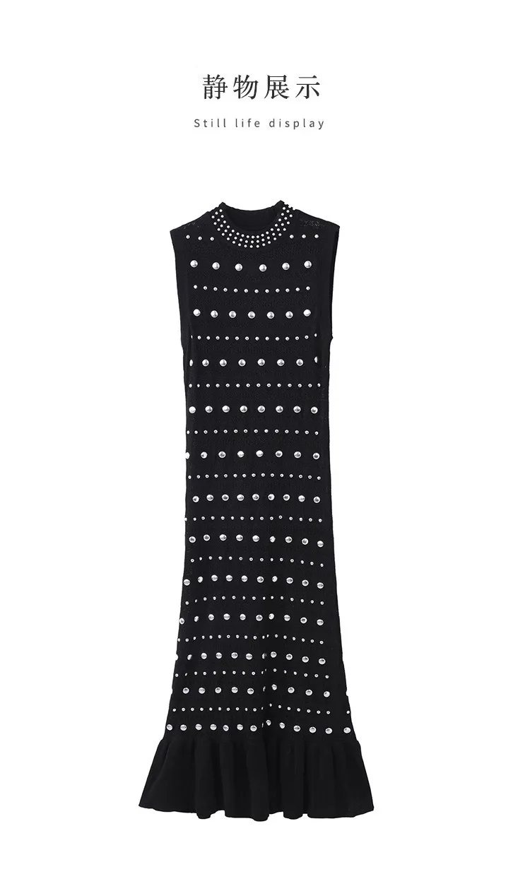 Robe tricotée de style européen et américain pour femme, col rond, perles chaudes, style unique, amincissant, longue, printemps/été
