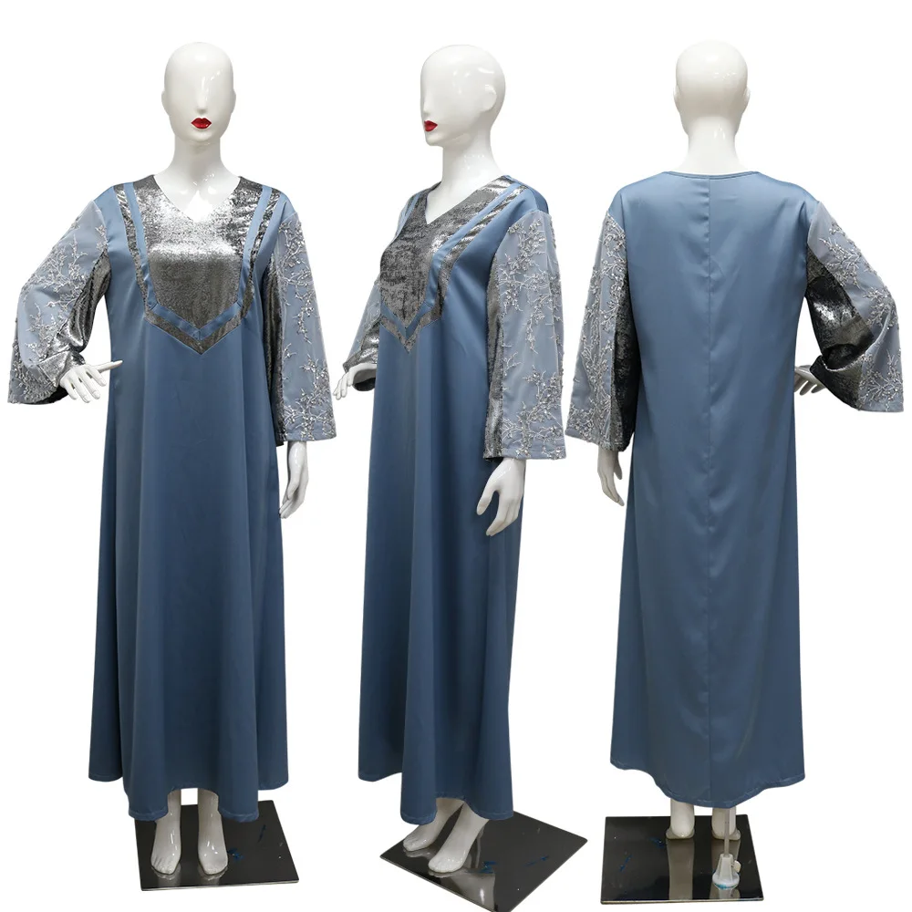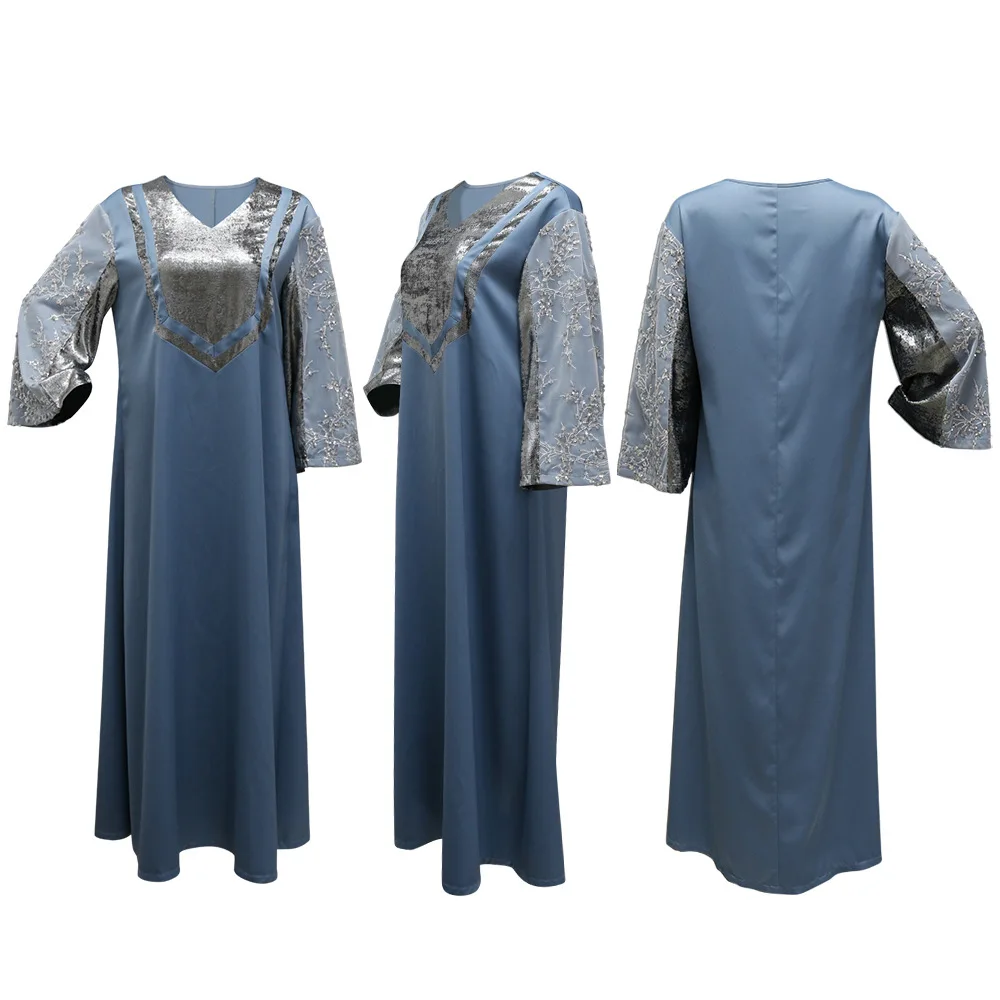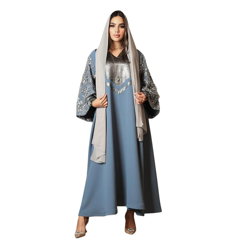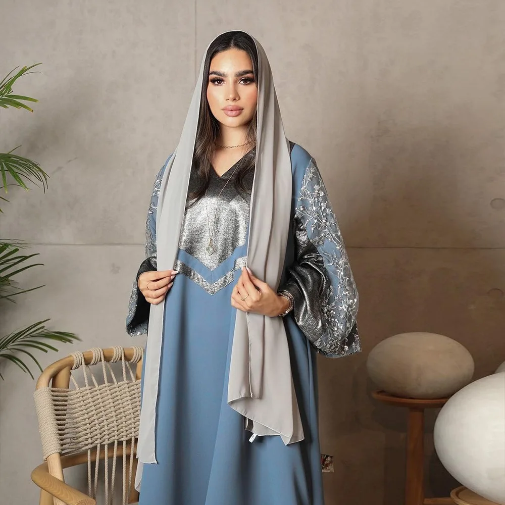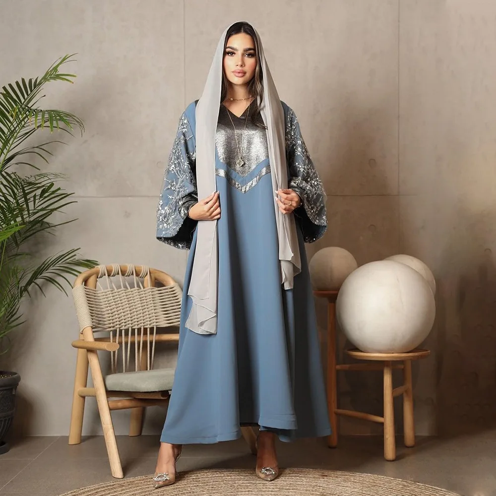 Robe à sequins musulmane tendance Dubaï, robe de soirée de luxe à manches longues, Vestidos pour femmes, kaftan marocain, vêtements islamiques Ramadan 2025