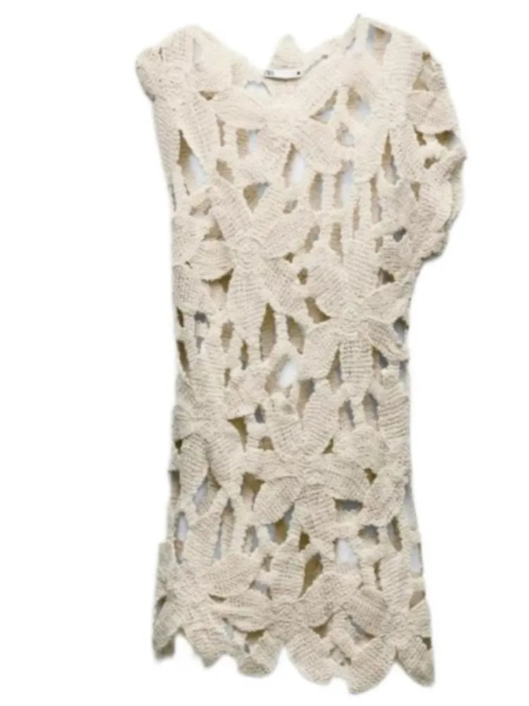 Robe de plage sexy en maille pour femme, décolleté en V ajouré, manches courtes, paréo, robe de vacances été 2025, maillots de bain de plage