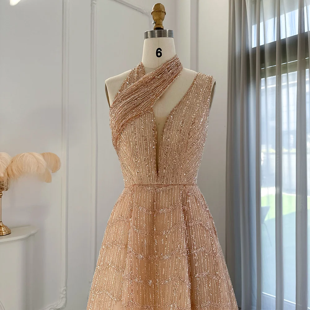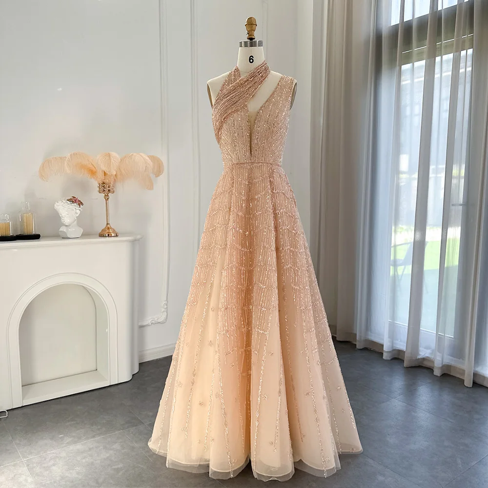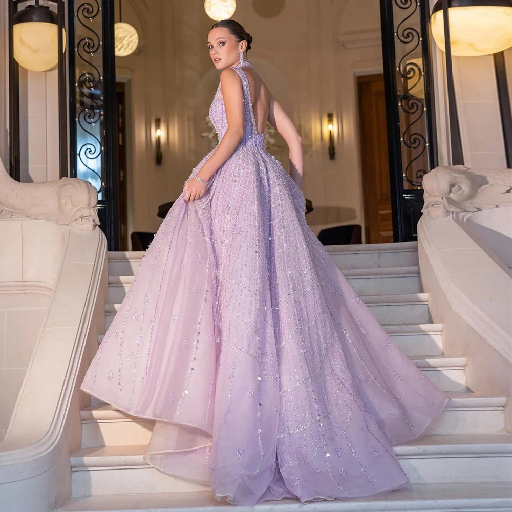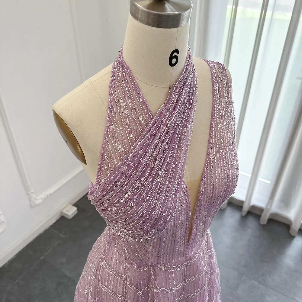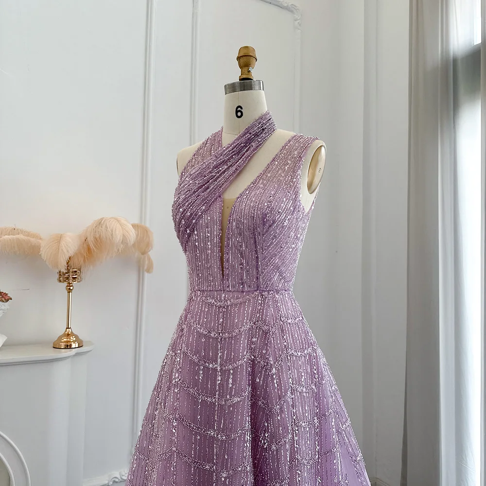 Robes de soirée de luxe Sharon Said, lilas de Dubaï, perlées et ornées de perles, pour femmes, idéales pour les mariages, les fêtes, les bals de fin d'année et les cérémonies de style arabe (SS329), sur mesure.