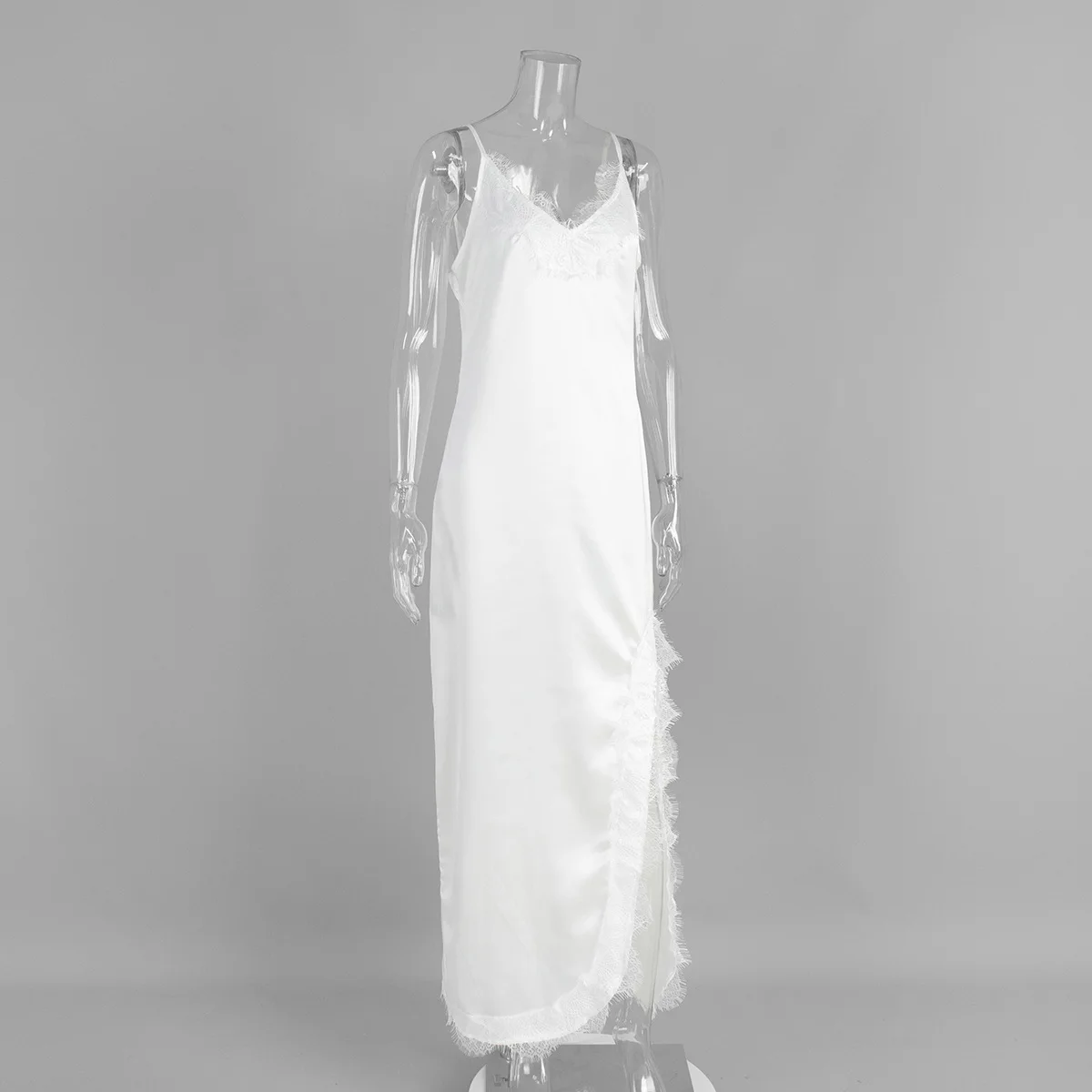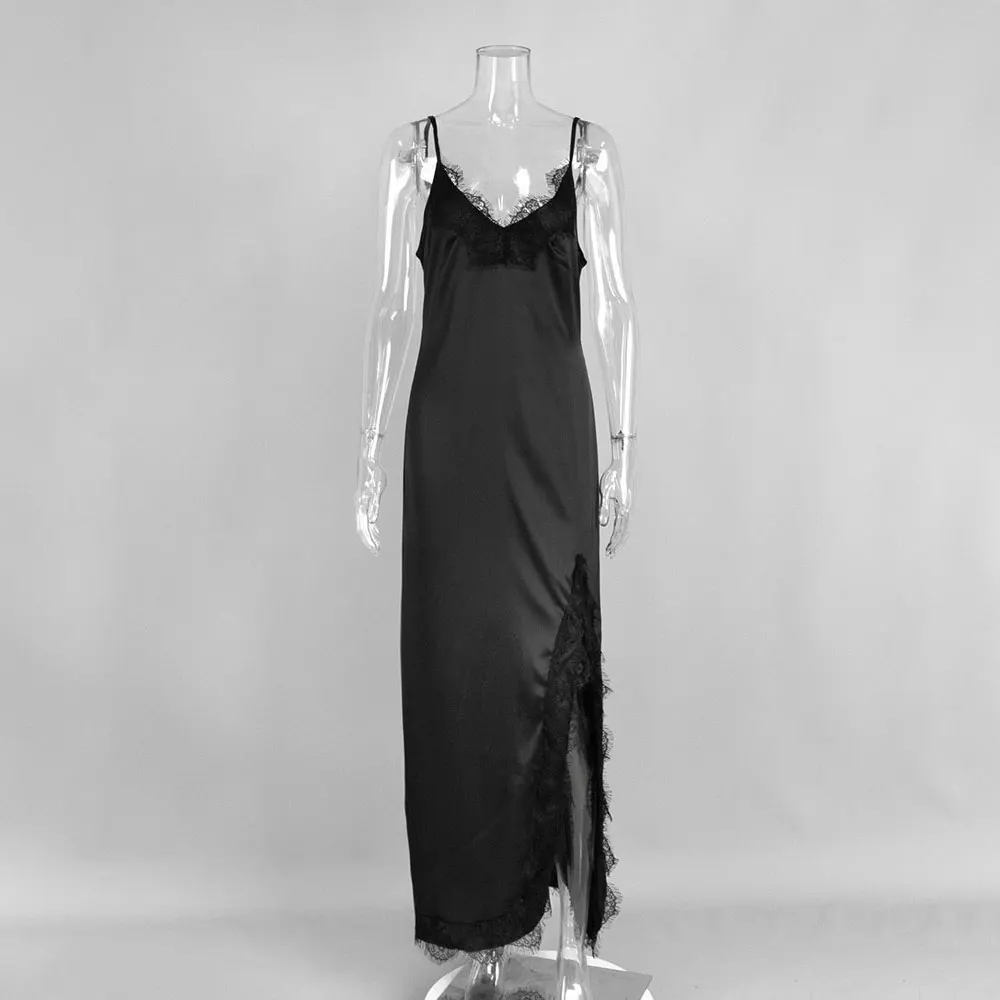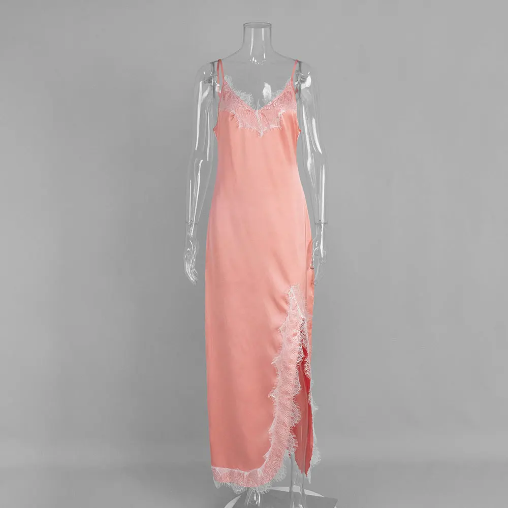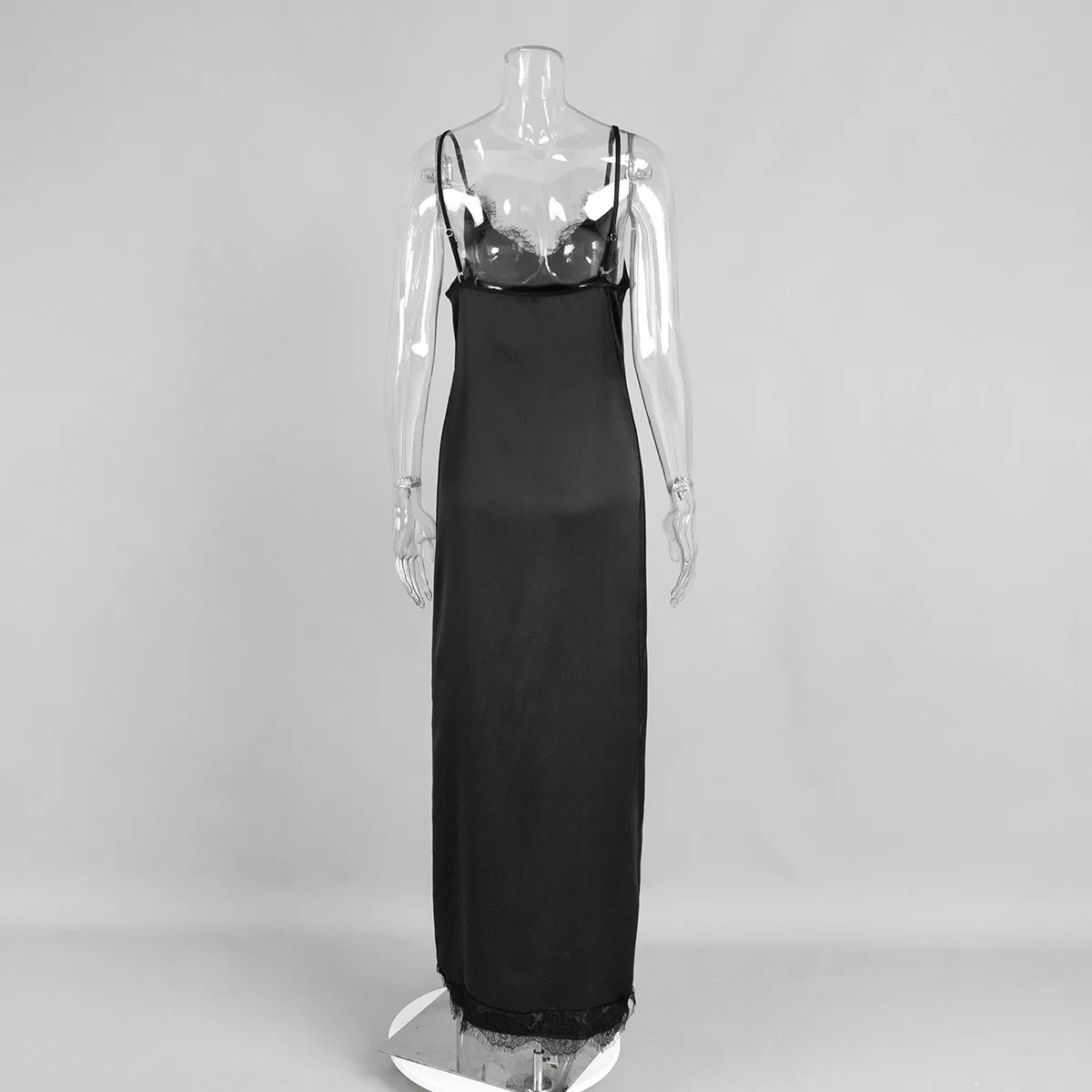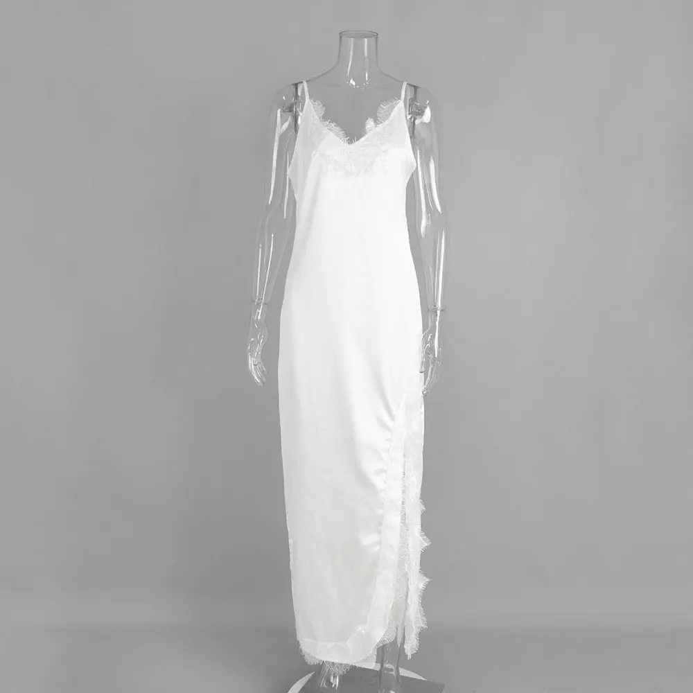 Robe de soirée sexy en dentelle imprimée à col en V pour femme, taille haute, slim, dos nu, spaghetti, été