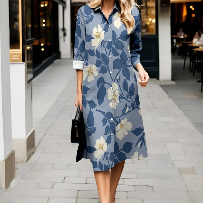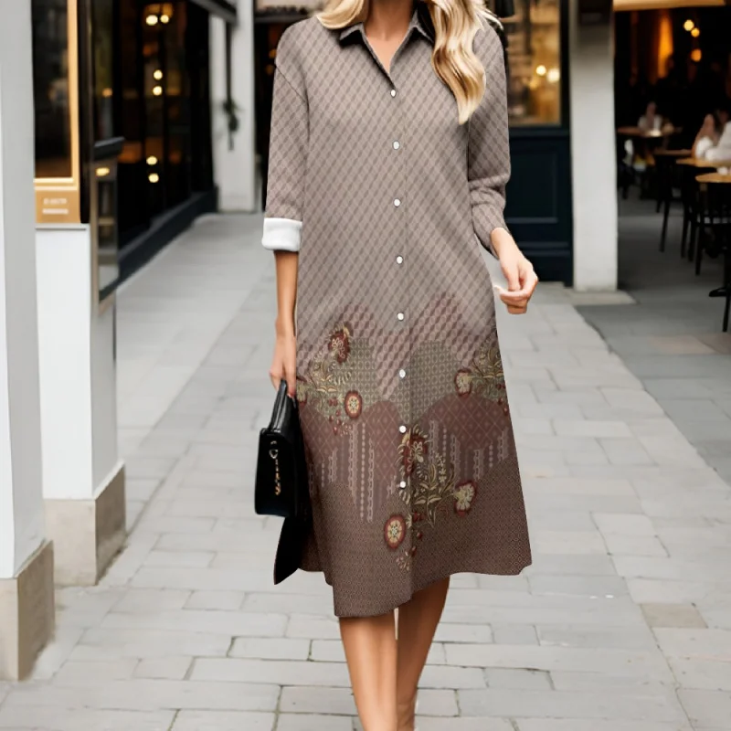 Robe fraîche d'automne décontractée à rayures, manches longues, boutonnée, style 2025. Robe-chemise élégante et ample.